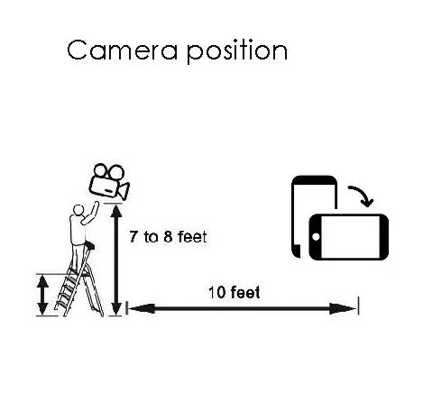 The main camera must be placed 10 feet from the bottom right corner, and 7 to 8 feet in the air, as shown in the pictures below.